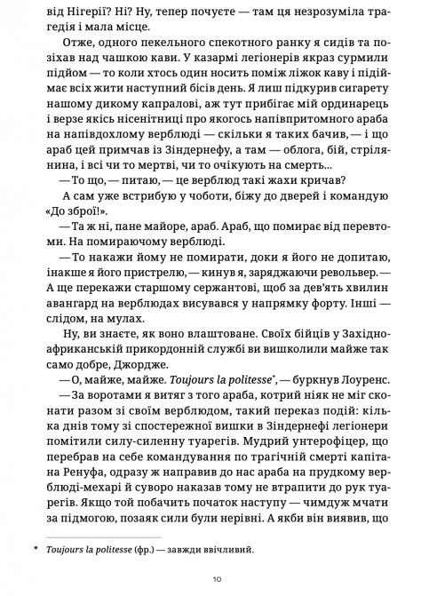 Ця книга — історія трьох братів і нерозкритого злочину, самотнього форту серед пустелі та Іноземного легіону, спекотного сонця та складних характерів. Це цікавезна історія, яку кілька разів було екранізовано впродовж двадцятого століття. Це чтиво, яким захоплювалася молодь у часи інтербелума. Це мотиваційний текст для мрійників.